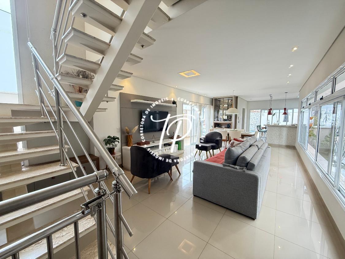 Parte Superior: Lustre de cristal na escada, 3 Dormitórios, sendo uma suíte. Acabamento da marcenaria em todos os dormitórios impecável