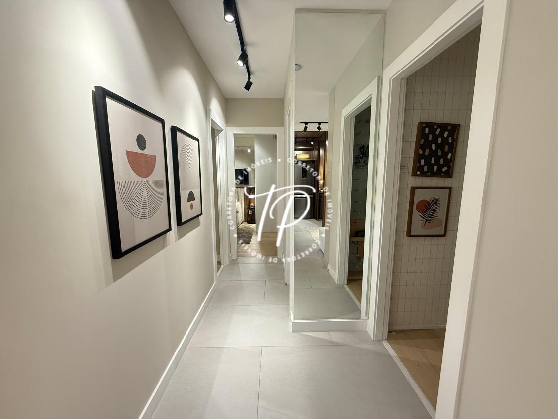 Piso laminado nos quartos e suítes, que traz elegância ao ambiente além de ser um material de fácil manutenção/limpeza e excelente durabilidade;