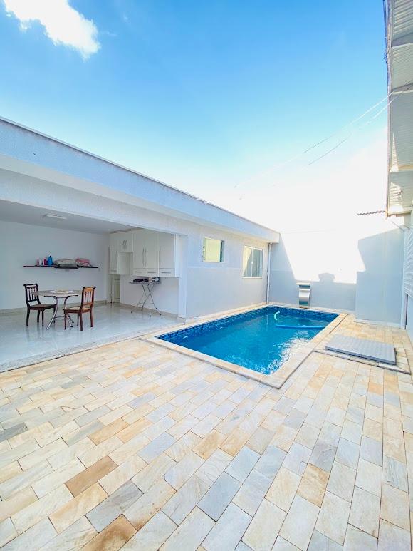 Quintal com espaço gourmet, churrasqueira, piscina, wc de serviço