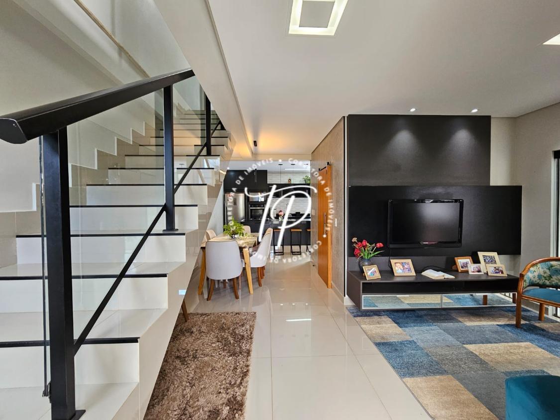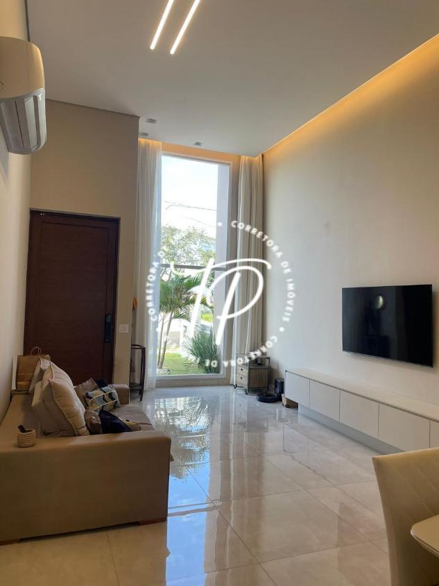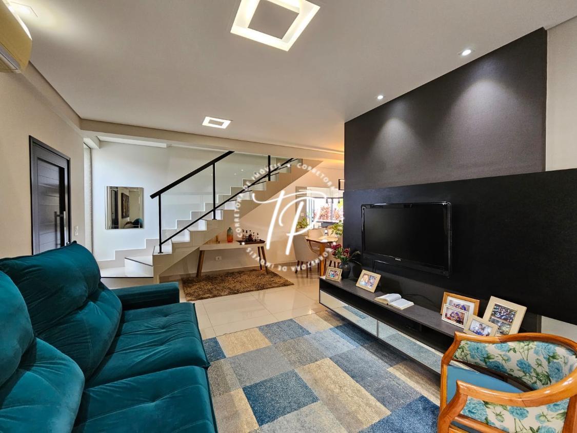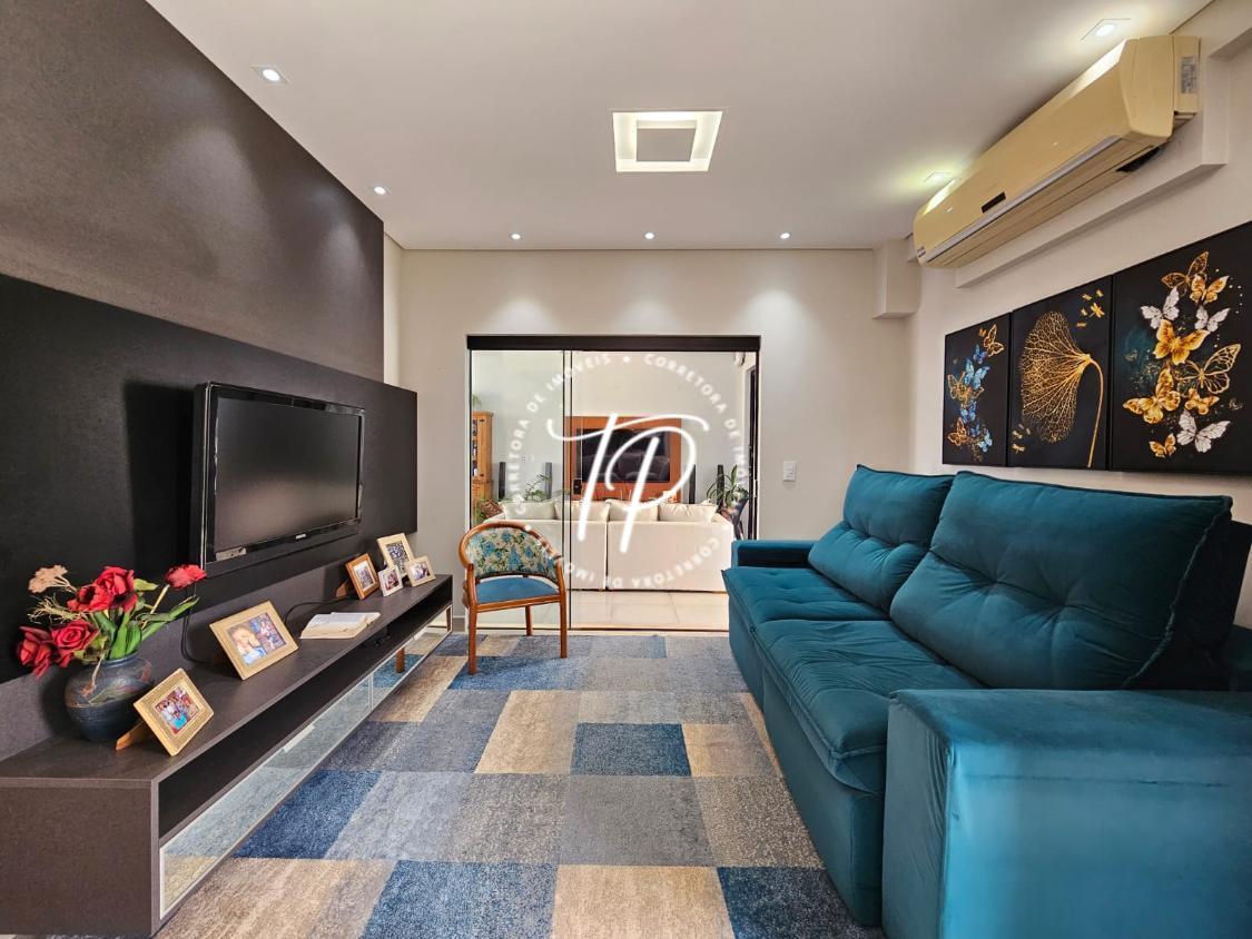 Hall de entrada, Sala de estar, Sala de TV com painel, ar-condicionado, Sala de jantar com espelho e luminária em LED, Lavabo